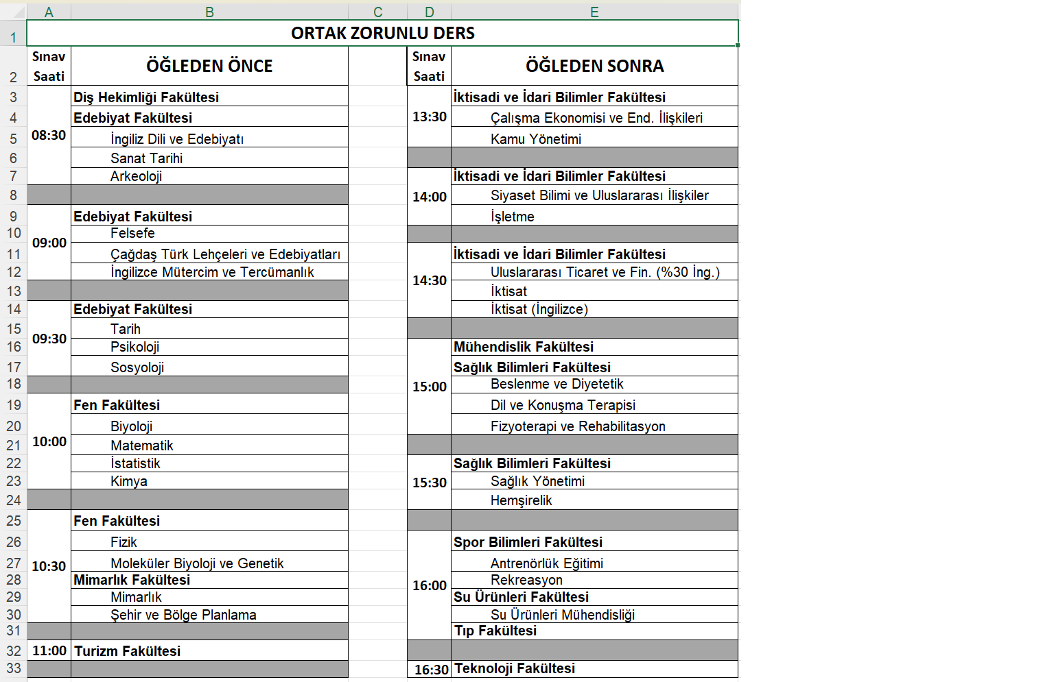 Fakülte-MYO laboratuvarlarında kendi okullarının belirlediği sınav saatlerinde sınavlara gireceklerdir..